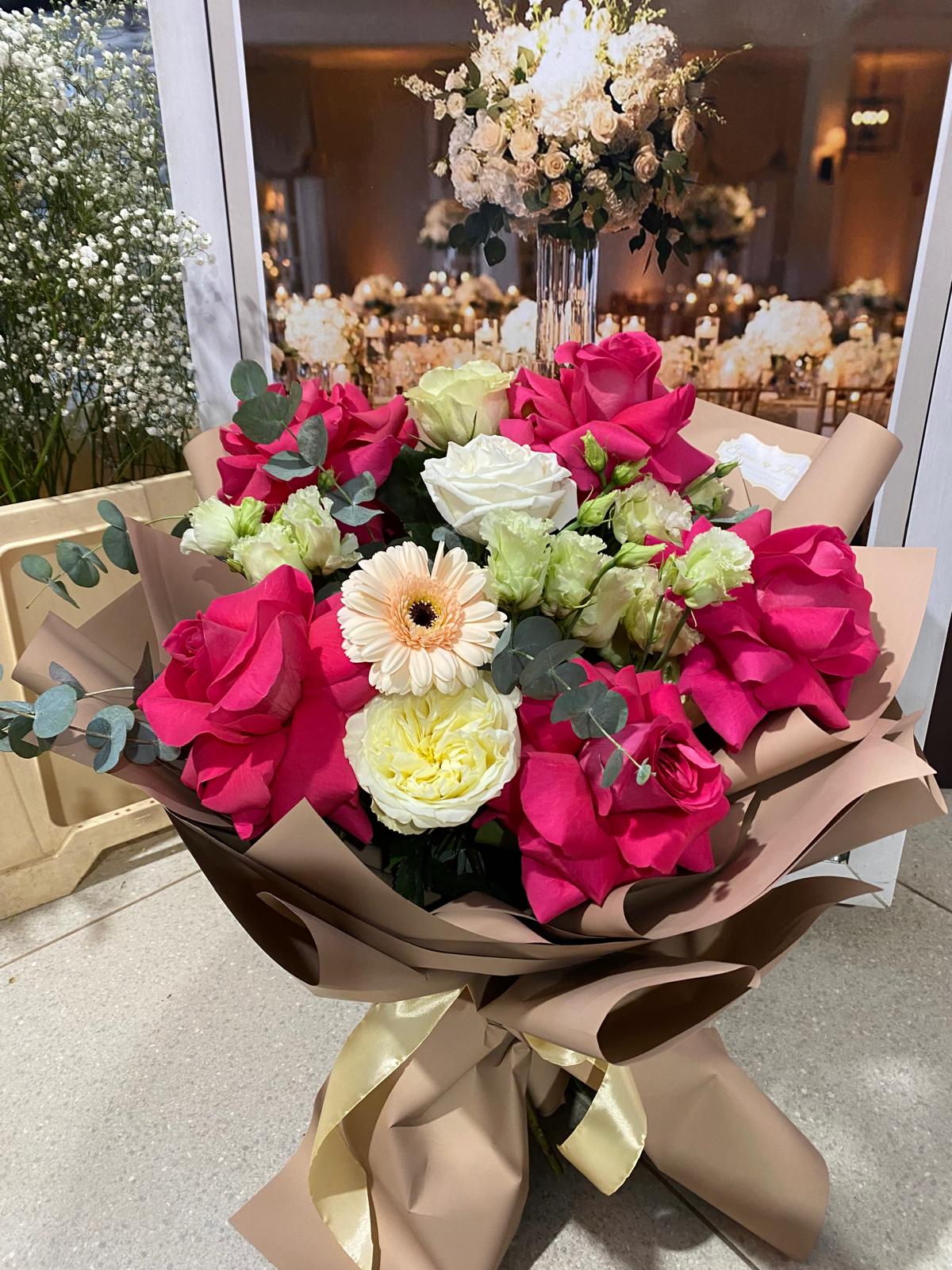 - Poza prezintă un aranjament floral real, așa cum a fost realizat și livrat la comanda unui client Expresii Florale.
