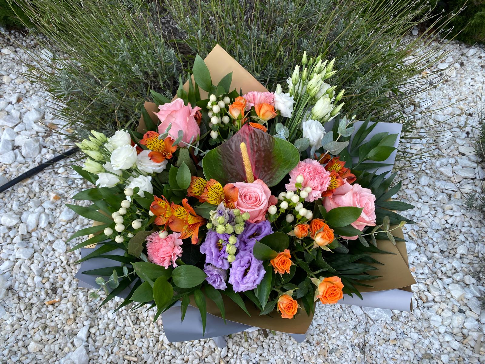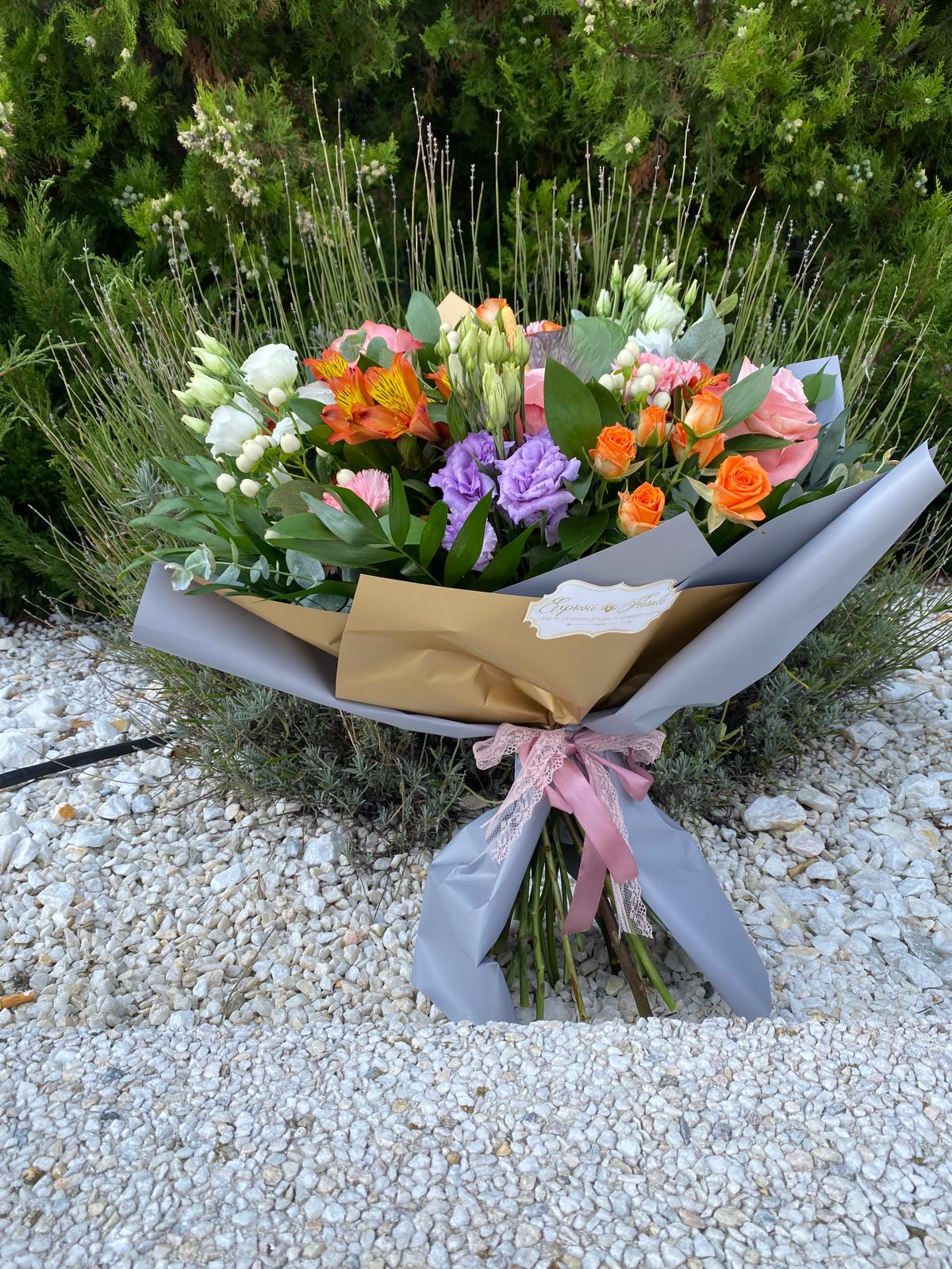 - Poza prezintă un aranjament floral real, așa cum a fost realizat și livrat la comanda unui client Expresii Florale.
